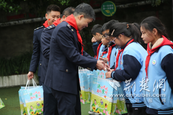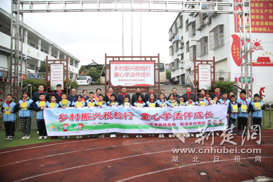 荆楚网(湖北日报网)讯(通讯员 朱昊天、贾辉、邹洪刚)4月24日下午,在“倒春寒”后气温不到9度的南漳,南漳县税务局与南漳县检察院的工作人员来到位于该县西南山区的峡口中心小学,举办“乡村振兴税检行,童心学法伴成长”联合主题普法教育课堂活动,为山区的学生们送去普法知识与温暖礼物。