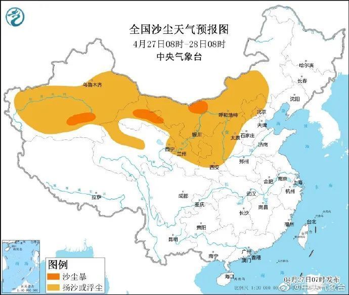 据@中央气象台 今晨消息,4月27日至29日,北方地区多沙尘天气——