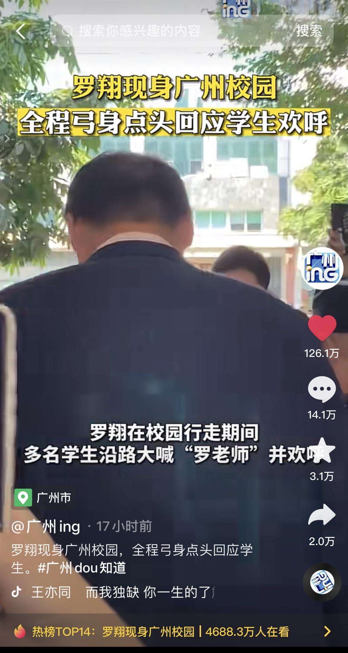据广州广播电视台综合频道“广州ing”4月26日报道,罗翔现身广州校园,全程弓身点头回应学生们。