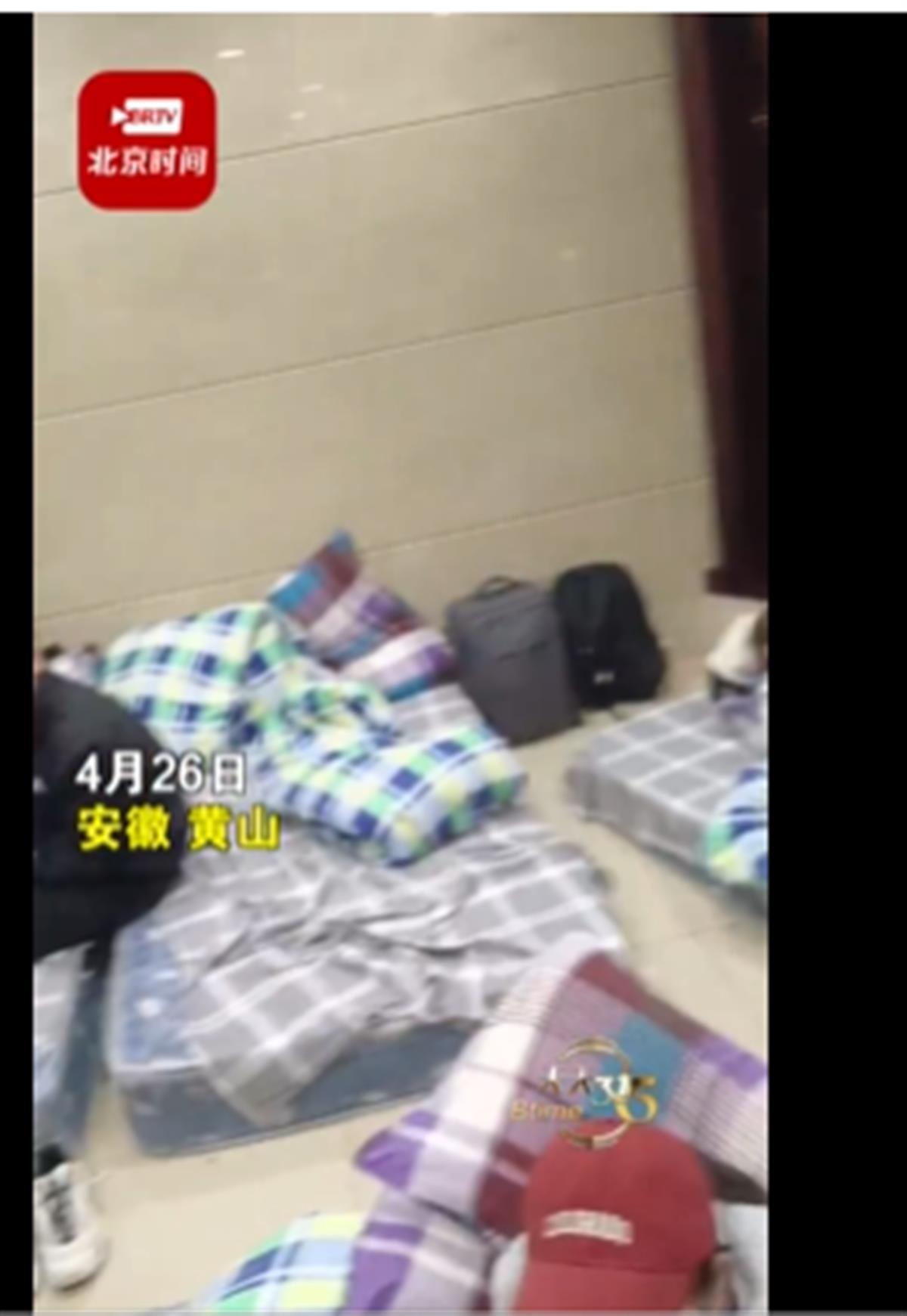 据时间新闻视频报道,4月26日,网上传出女子去黄山看日出,花200元只能打地铺睡宾馆大厅和过道。当事人朱女士称,当晚山上有白鹅山庄工作人员来拉客,称200块钱一张床住在房间里,到宾馆后却被安排在大厅打地铺。朱女士说,酒店晚上不关门持续拉客,早上两位伙伴都被冻病了。