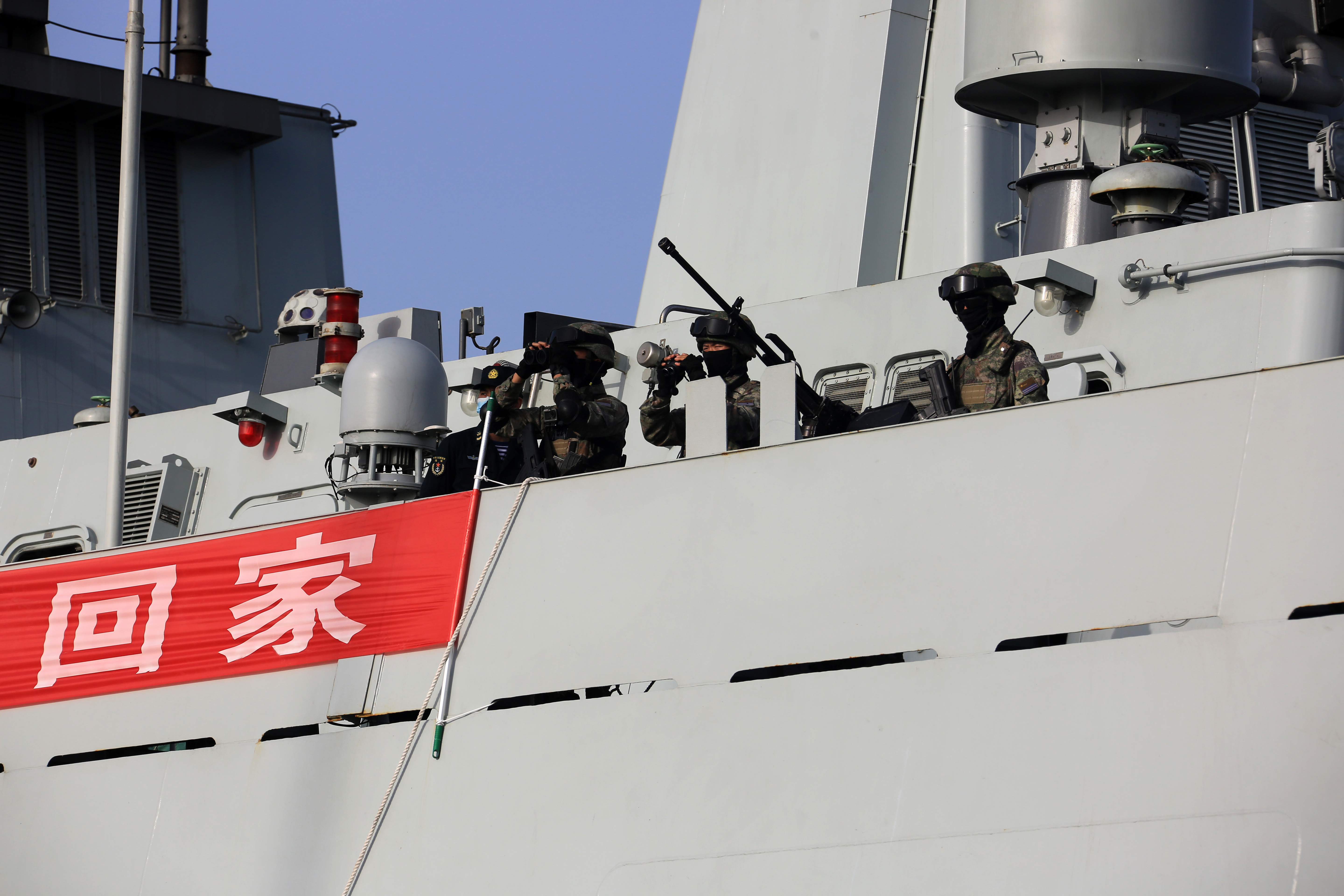 今天(4月28日)上午,中国海军淄博舰、荆州舰、千岛湖舰组成第44批护航编队从舟山某军港解缆起航,赴亚丁湾、索马里海域接替第43批护航编队执行护航任务。3艘舰艇为东部战区海军主力舰艇,携带舰载直升机2架、特战队员数十名,任务官兵700多人。