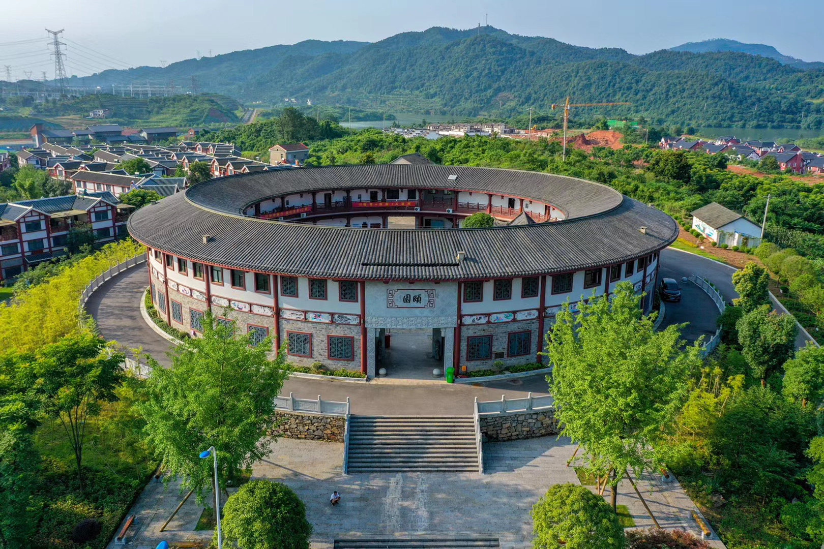 木质窗棂、朱红大门又融合了土家风格,古色古香的古建筑符号涵盖每个角落。其中谜镇最有特色的土楼-颐园,呈现的不仅是古建筑风格,也是一种“凝聚”的精神。