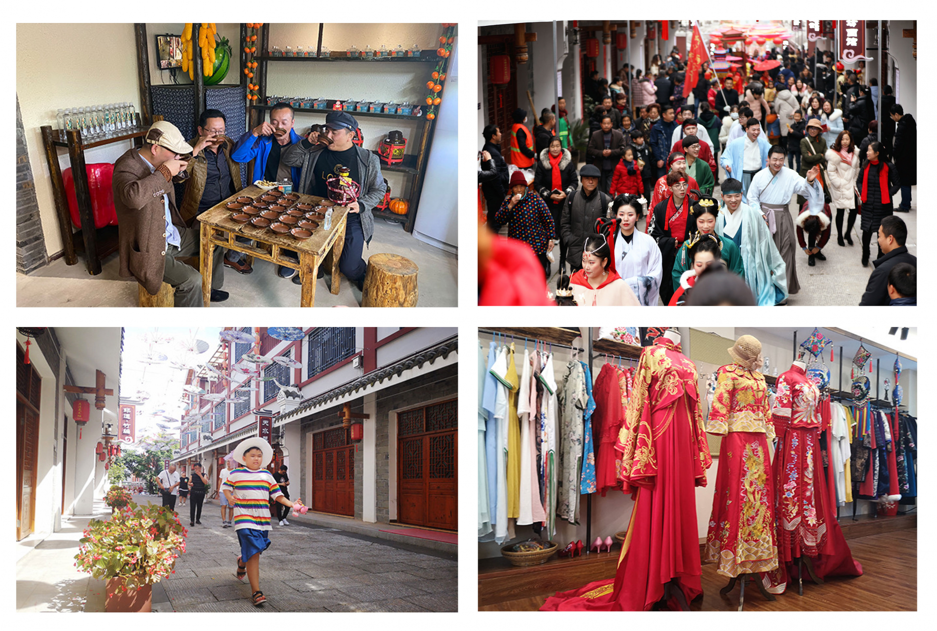 桐树堰民俗文化步行街,随处可见一幅幅引人思考的谜语,众多独具地方特色的美食以及非遗和工艺品店铺。在这里,游客不仅可以逛街品尝小吃,还可以体验手鼓、摔碗酒的快乐,感受浓郁的人文风情,享受惬意的慢生活。