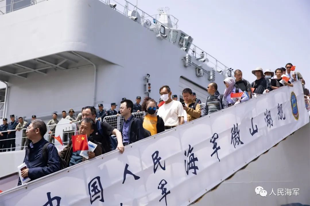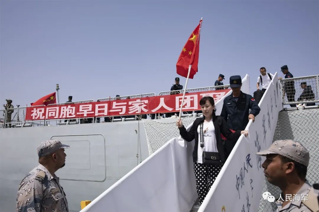 首批撤离的678人随舰安全抵达