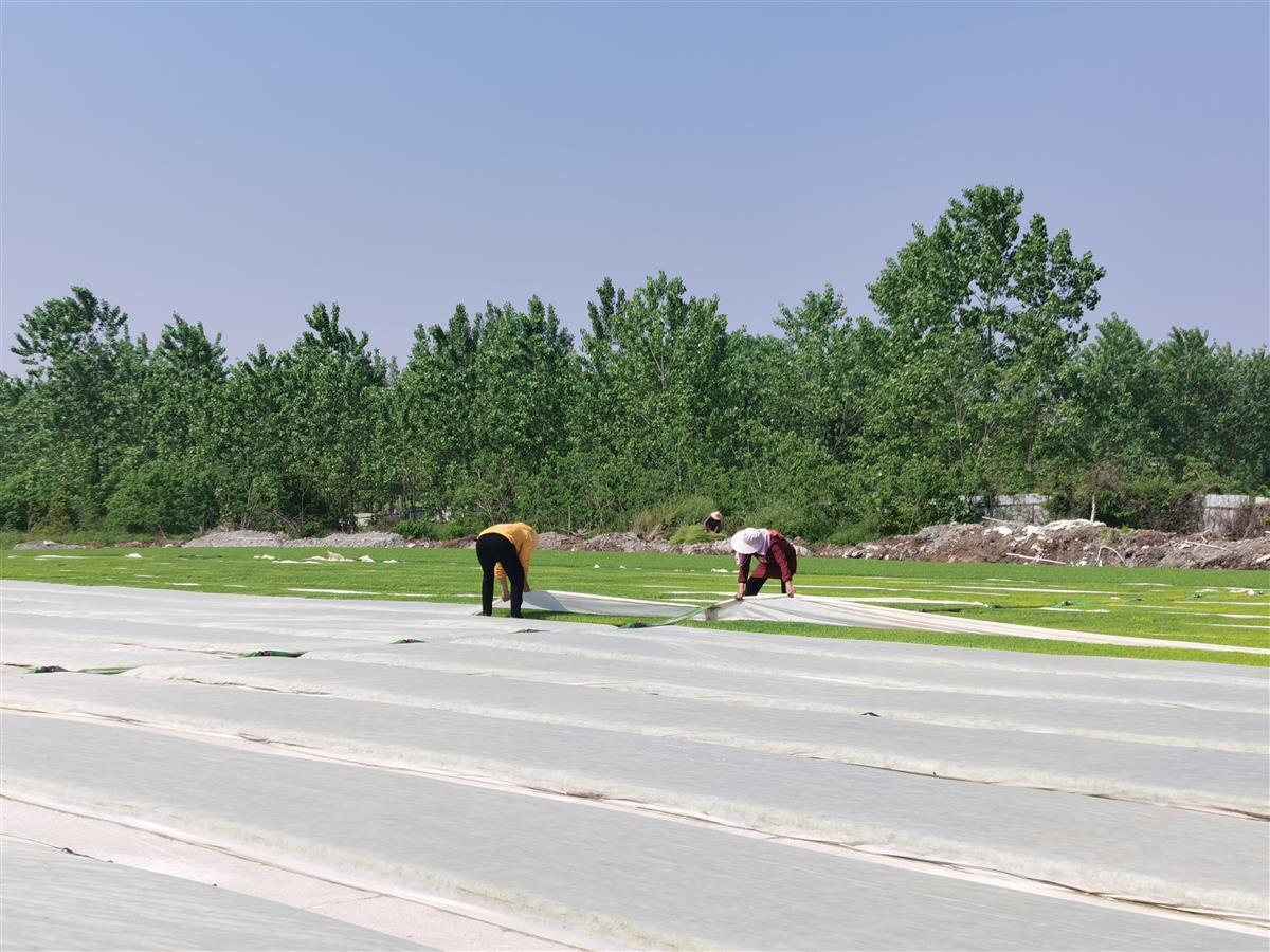 “传统的水稻大棚育秧技术,建造钢构大棚成本较高,土地利用率较低。水稻无纺布露天育秧技术,在空地露天培育秧苗,土地可循环利用,且秧苗接近于自然生长,具有省工省时、节约成本、发芽率好、成活率高、秧苗质量高等优势。”徐古街道农业服务中心主任陶应飞介绍,通过无纺布育秧技术培育的秧苗,最快20天便可下田,15-20盘便可满足一亩田的插秧需求。