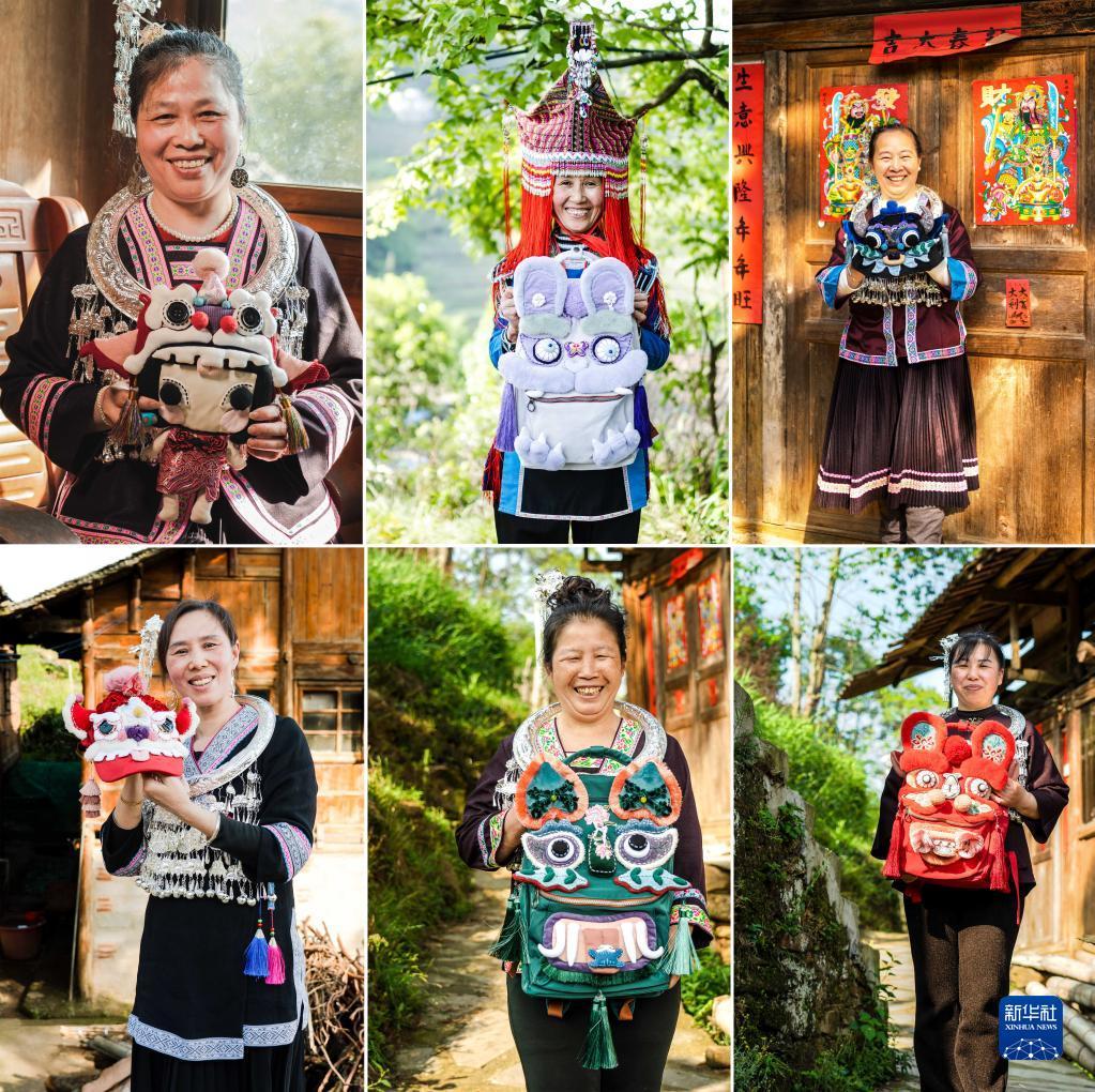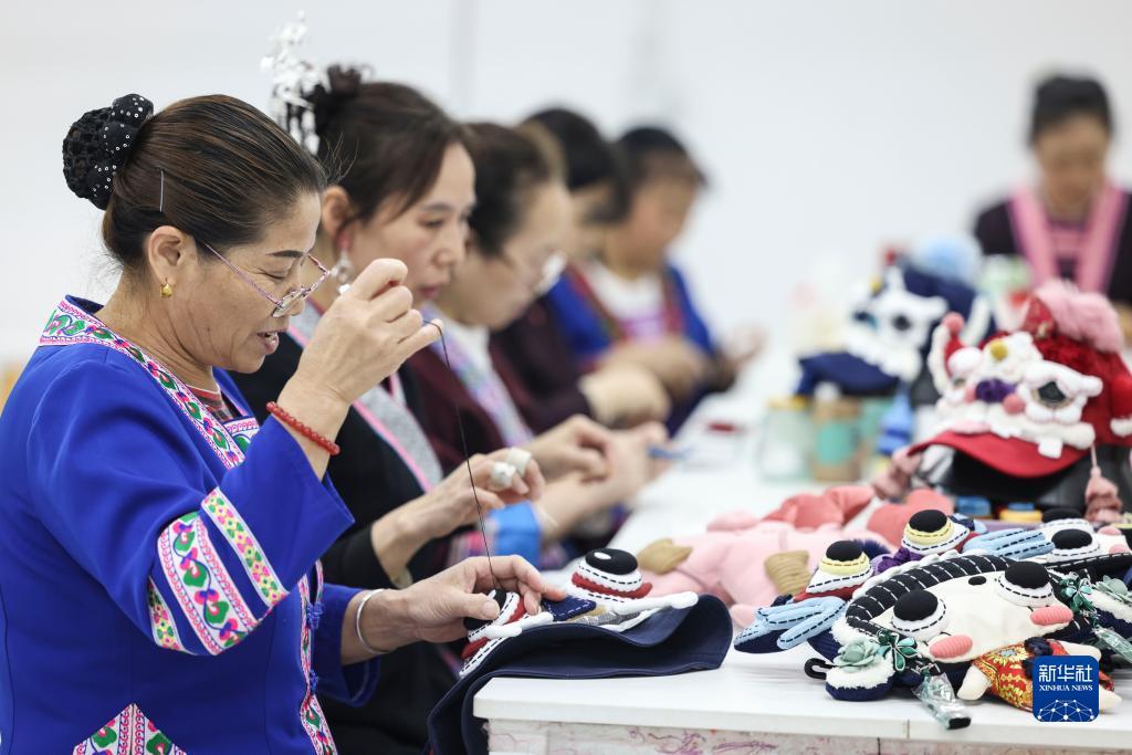 4月26日,绣娘在位于广西桂林市龙胜各族自治县的一处生产车间赶制产品。