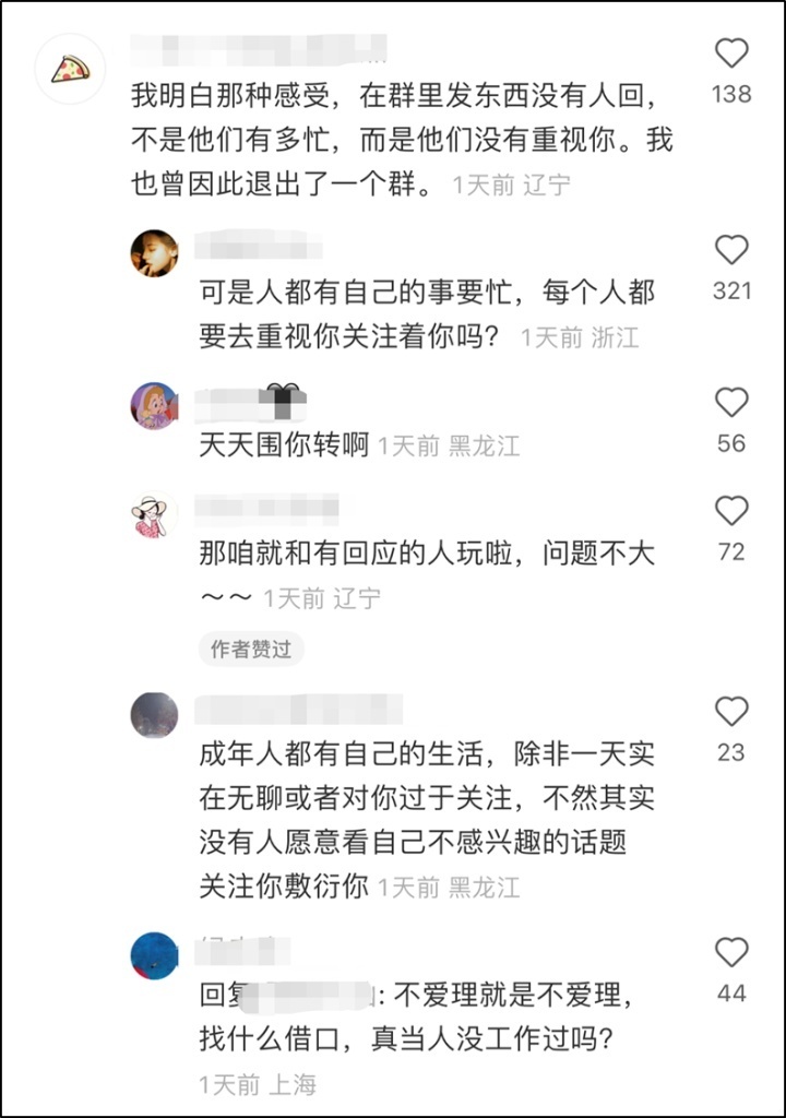 对他发的内容几乎不作回应。