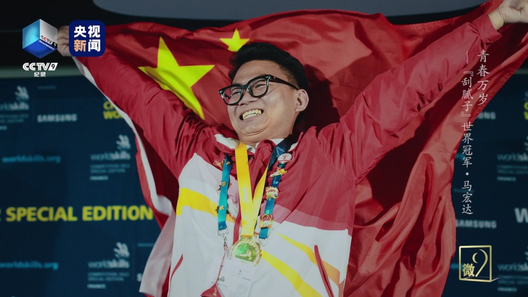 2019年3月,在俄罗斯喀山第45届世界技能大赛的选拔赛上,马宏达看到师兄获得银牌,披着国旗振臂高呼那一刻,心里种下一颗“代表国家出征”的种子。