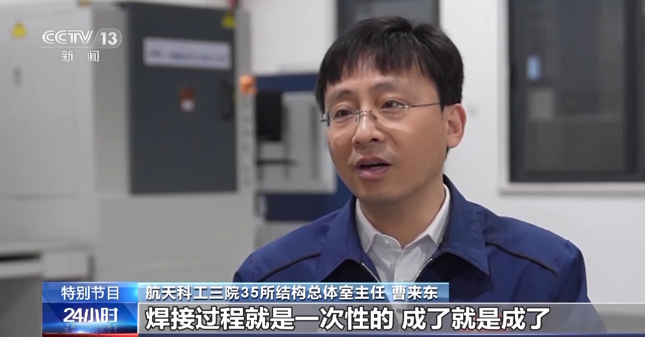 航天科工三院35所结构总体室主任 曹来东:焊接过程就是一次性的,成了就是成了,如果不成的话,补焊的难度是相当大,所以基本上我们不补焊。