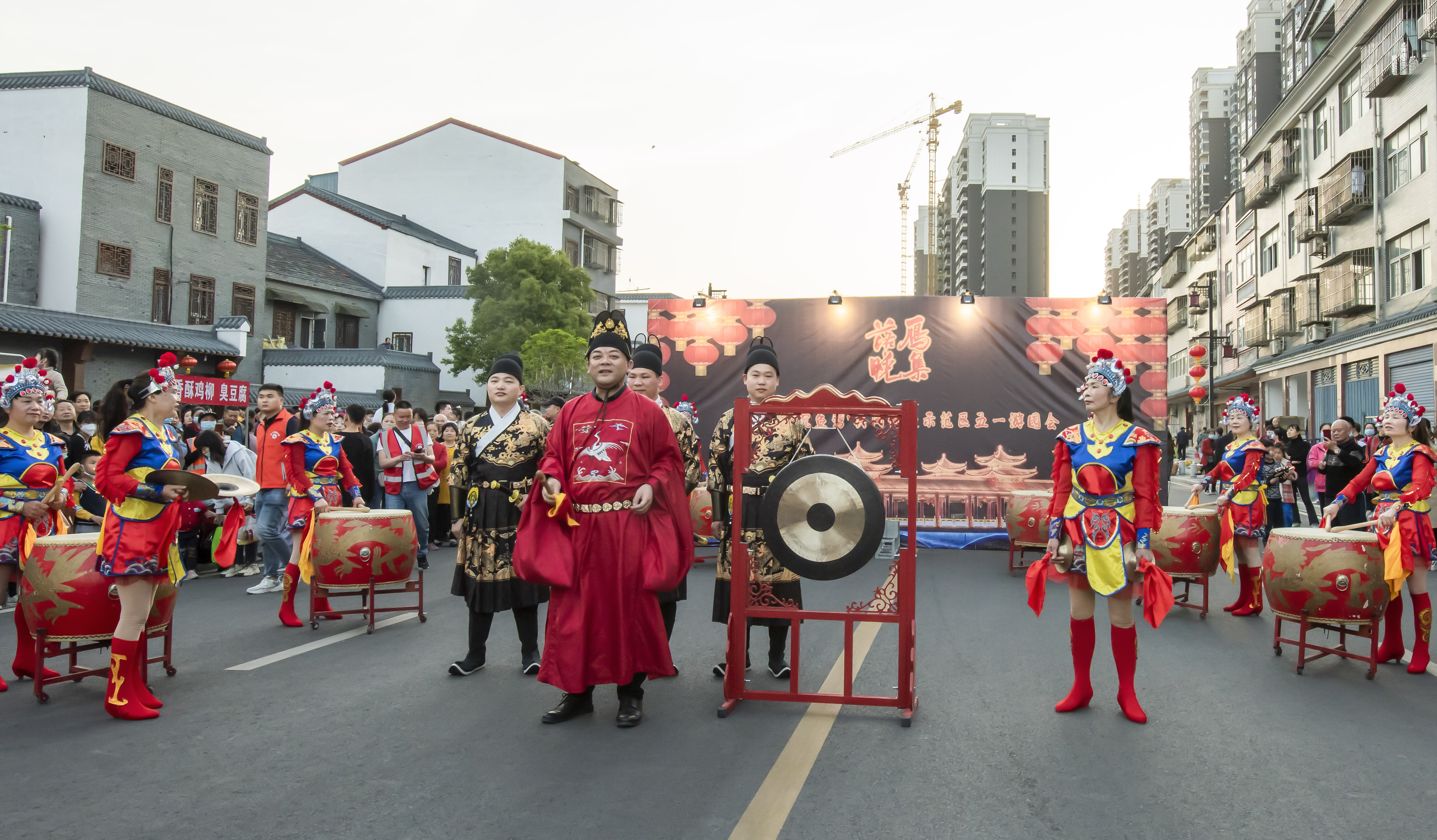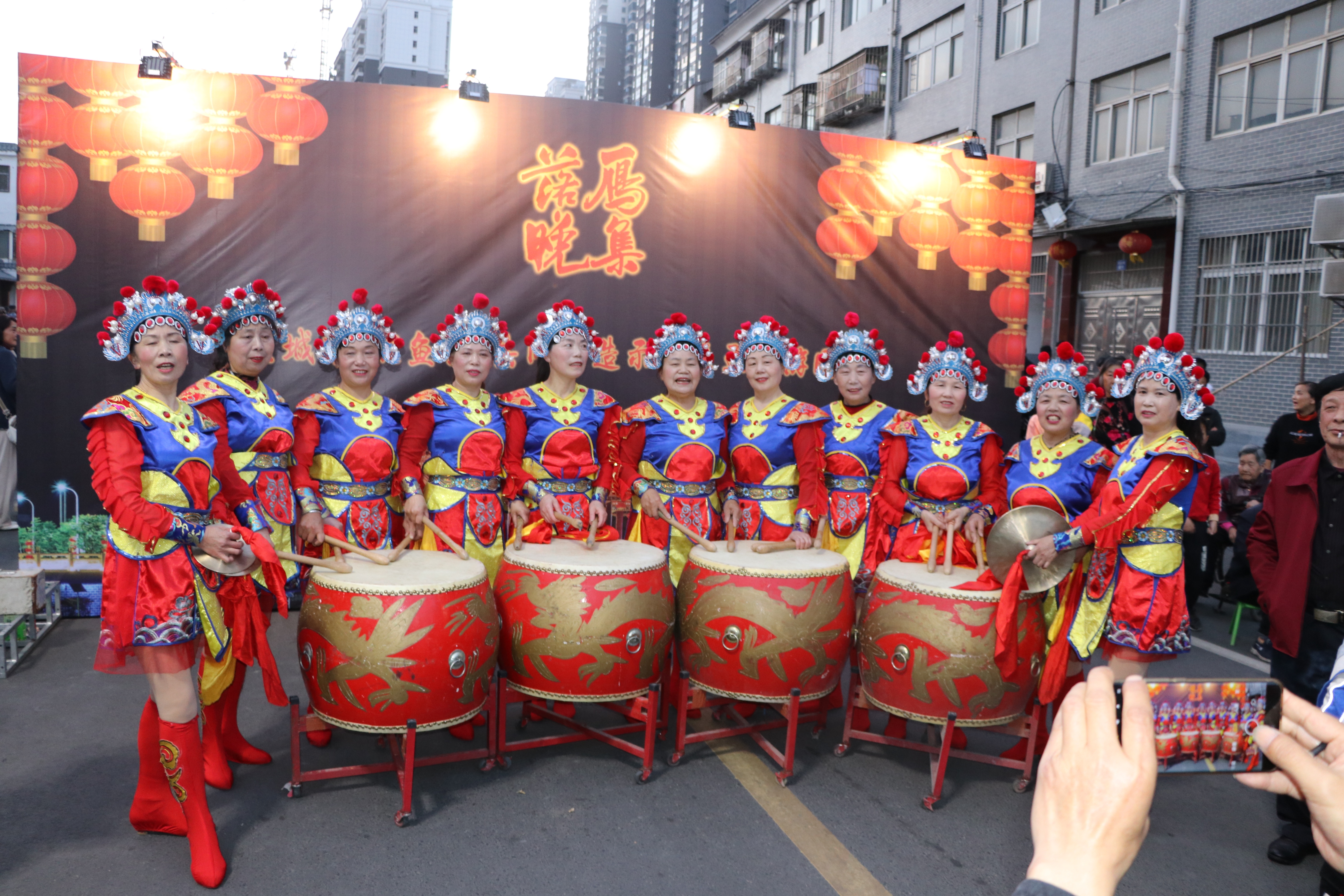 黄滩镇临江口民俗艺术团威风锣鼓应邀走进落雁桥口准点献映,落雁晚集在一片热腾欢闹声中开市。