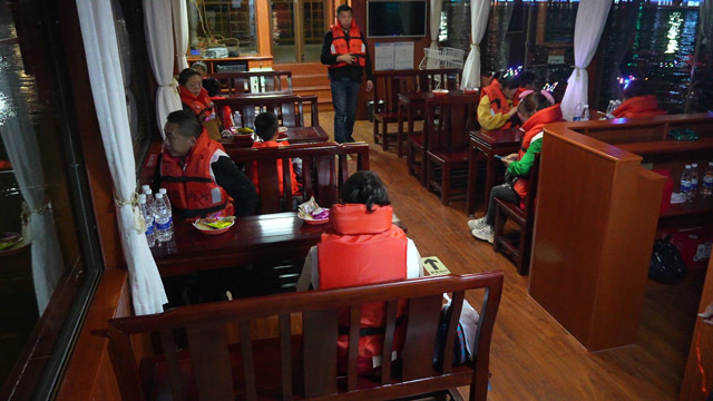 游客乔女士:有灯光,有小吃,特别好,还可以免费听演唱会。夜游陆水,以前没有在这边坐过,感觉灯光特别美。