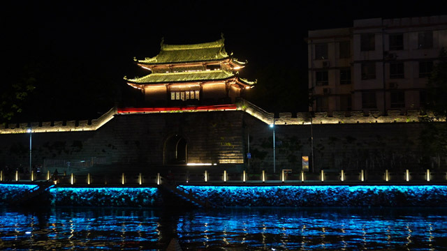 夜游陆水河项目由赤壁市两山投资发展有限公司负责整体策划、施工、运营,该项目全程以自然景观+光影艺术+文化特色的形式提升赤壁城市夜景。整个游线从三国美食城启航,单边6.2公里,整个项目往返12公里,有峨石宝塔灯光秀、蒲圻古城墙、三峡试验坝、青泉公园等特色亮点。