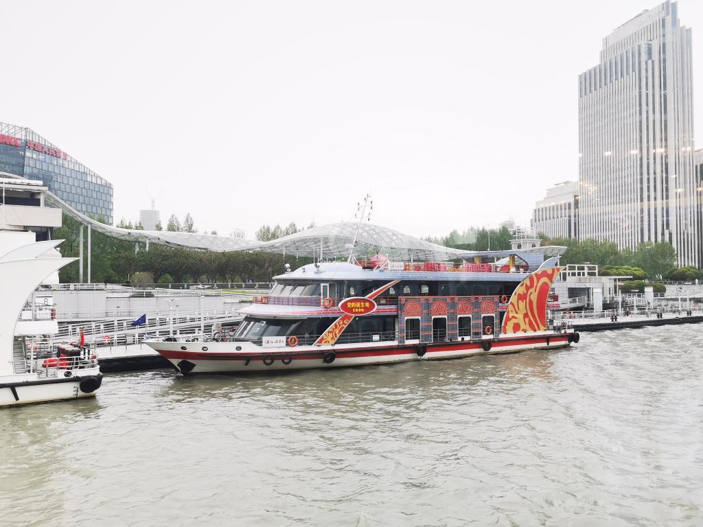 停靠在黄浦江畔的“党的诞生地”主题游船。新华社记者 陈爱平 摄