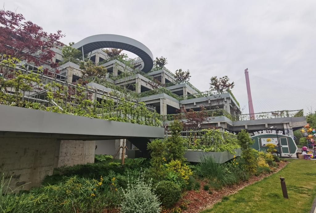 在杨浦滨江,由烟草仓库改造而成的“绿之丘”。新华社记者 陈爱平 摄