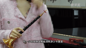 刘雯雯就拿起唢呐“吹着玩儿”