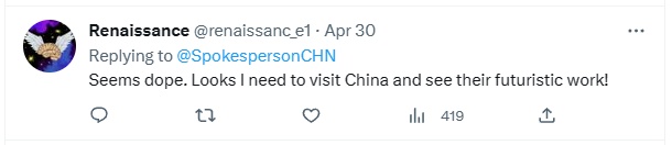 网友:看起来很酷!看来我需要去中国看看他们未来的作品!