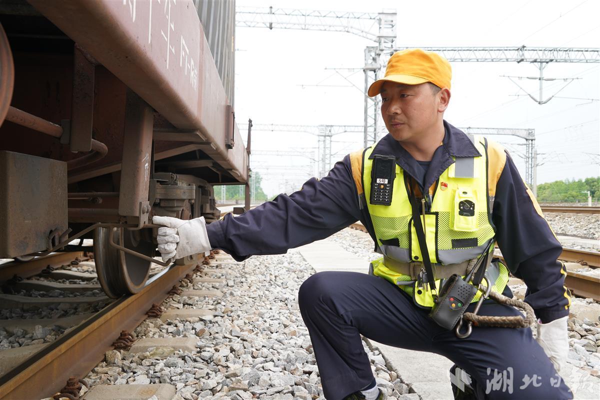 4月29日上午,位于武汉市东西湖区的吴家山车站,车声隆隆,一个橘黄色的身影在车皮之间不断腾挪、攀上、跳下、摘钩。“2号,我是4号,进档作业请求防护,”这是连结员陈荣在向调车长牛强进行调车联控。