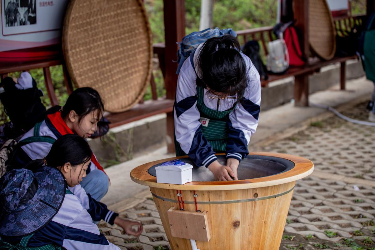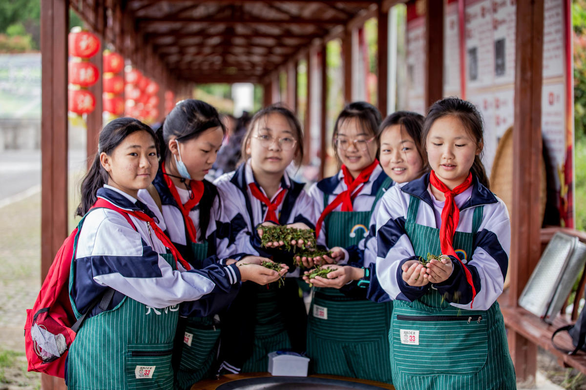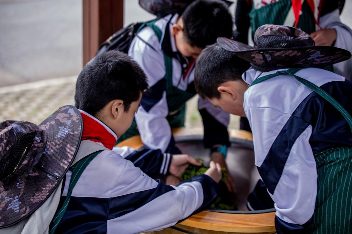 茶的制作工艺,源远流长却生生不息,搓、揉、挑、拨、抖、旋等每一道工序都有一番讲究,研学过程中“小茶农”们神情专注,静静感受茶文化之美,学习制茶工艺。