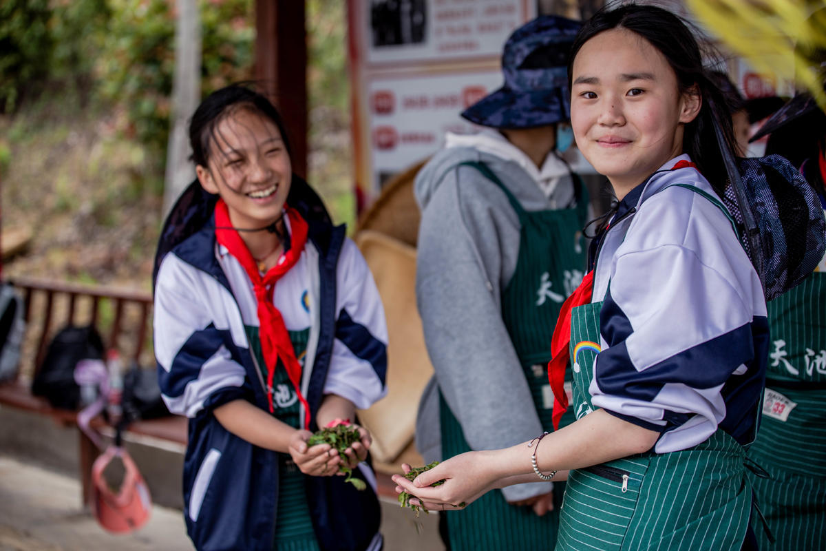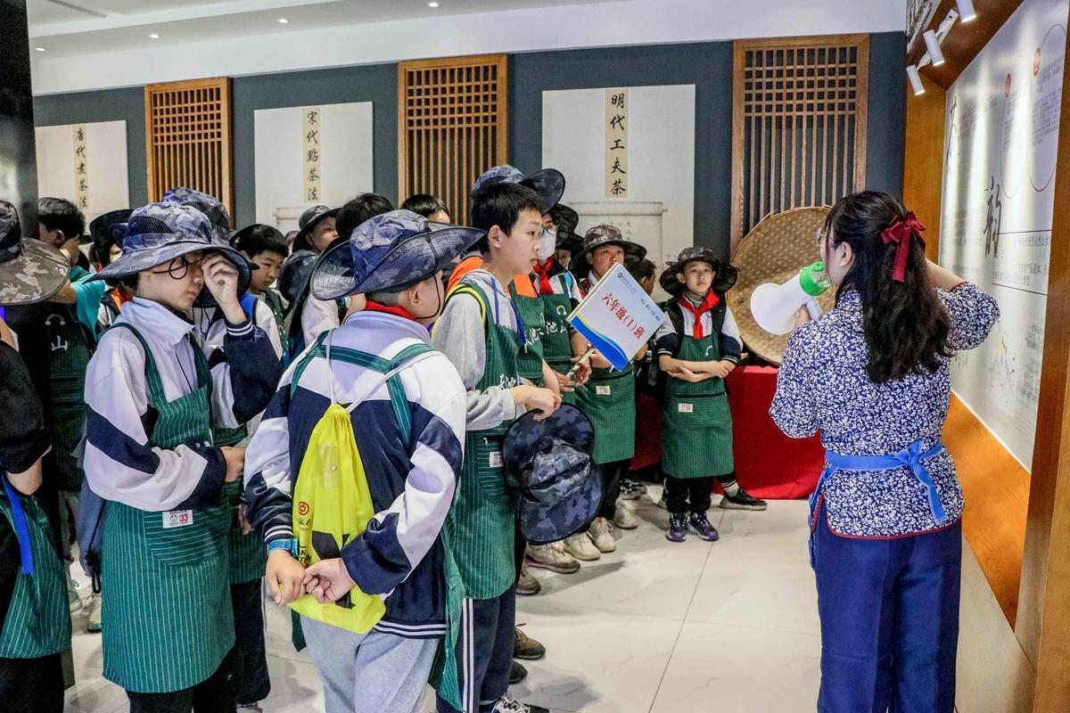 “在天池山,我们除了可以让孩子们亲自体验采茶、炒茶,同时我们还建设有茶道博览馆、茶坊、茶餐厅、茶民宿等六处以茶文化为主题的体验中心,让孩子们走近茶文化,感受中国传统茶文化的魅力。”天池山景区运营总监宋浩然说。