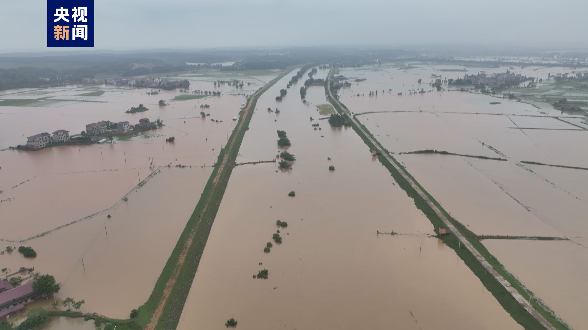 △宜春樟树市中洲乡车塘村多个村小组被洪水围困,积水有半米深。