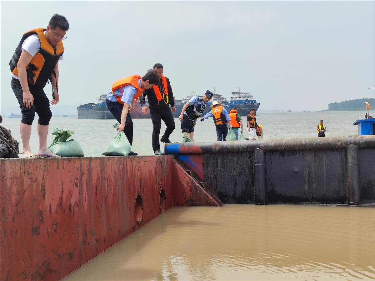 接到险情后,公安、海事和水政等部门立即组织人员前往救援。“我们赶到现场的时候,发现船艏前倾,前舱仍有大量江水持续灌入,随时可能沉没。”长江航运公安局黄石分局黄冈派出所相关负责人介绍,接到报告后,该派出所立即组织精干警力赶赴现场,发现该船前方的货舱部分已几乎全部进水,船体有一半被水淹没。在保证船上船员安全后,派出所负责人立即召集海事、水政部门工作人员根据水情、船情特点,制定出施救方案,防止船舶沉没。