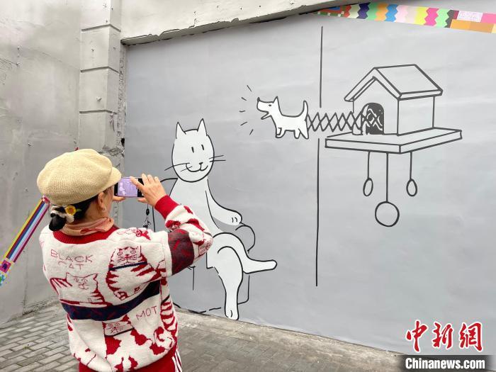 “猫街”吸引的游客不仅有穿搭时尚的年轻人,还有白发苍苍的长者,其原因不仅因为萌猫可爱、“爱猫一族”颇多,还因为艺术融入老城厢碰撞出的新奇感着实太吸引人。