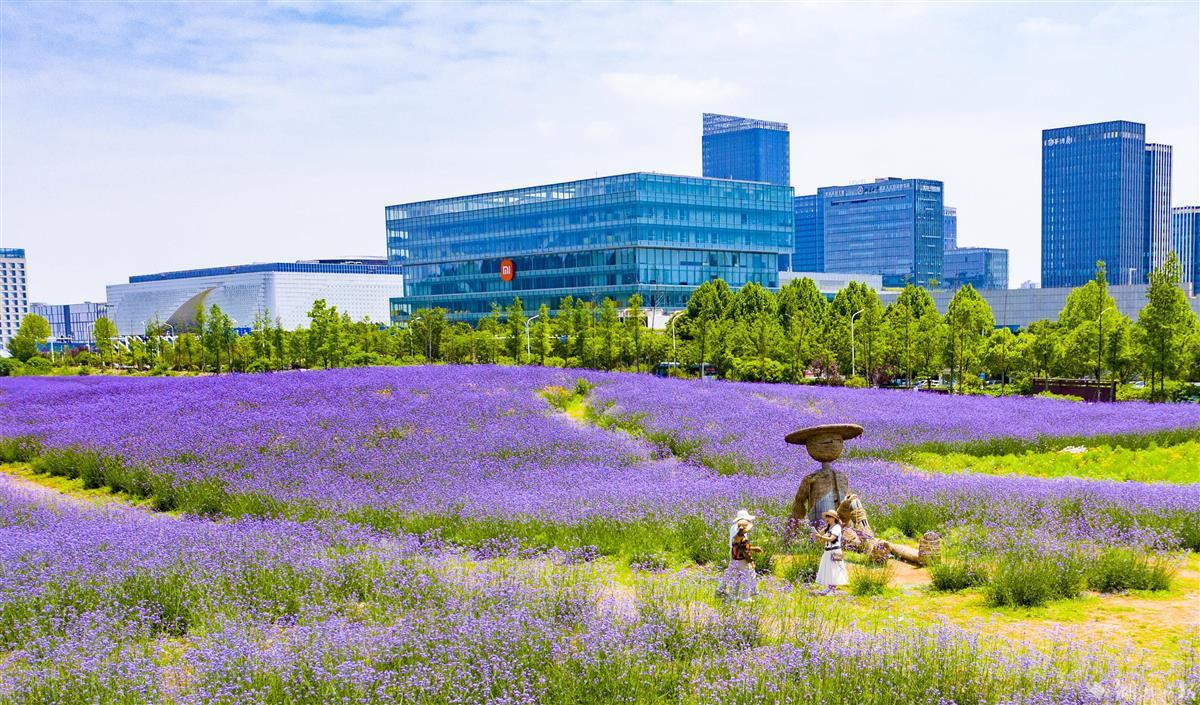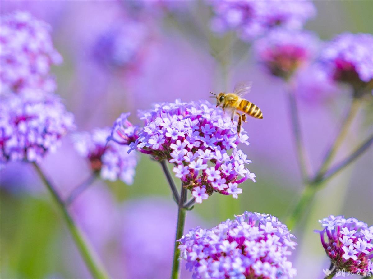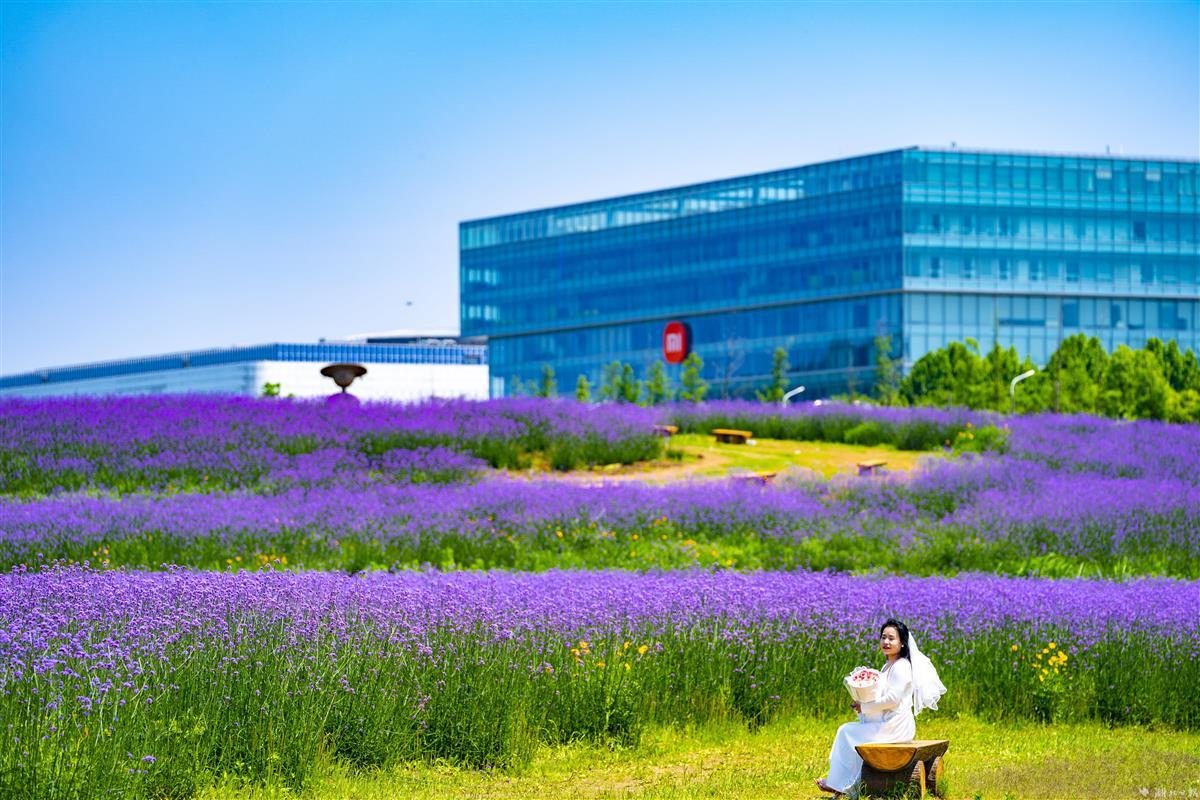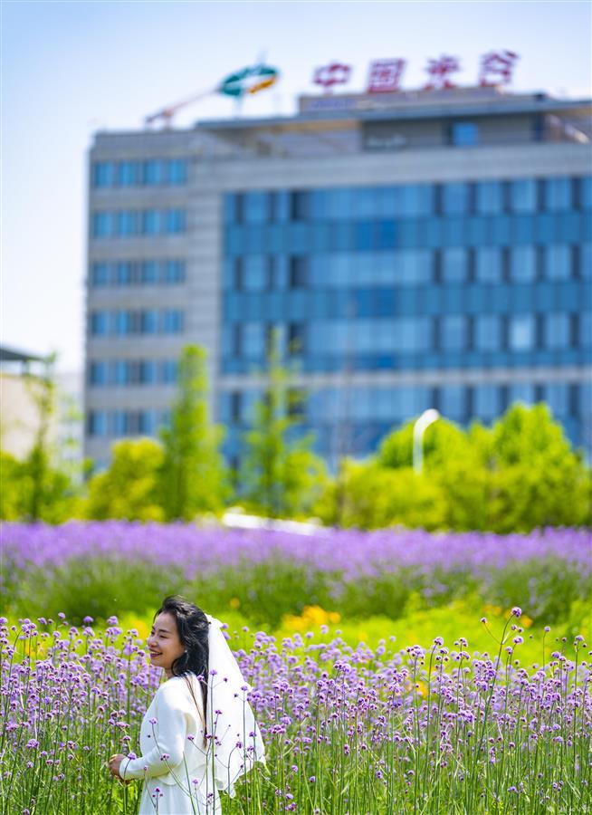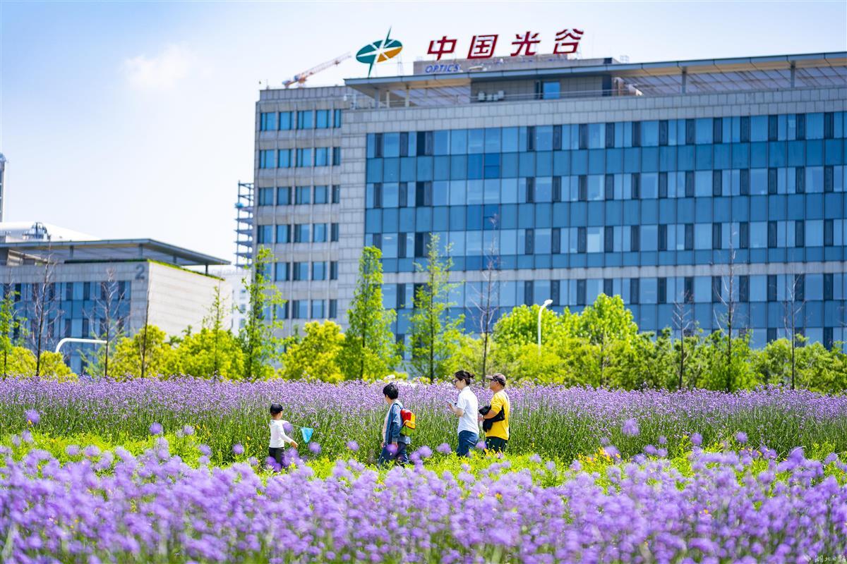 5月8日,武汉东湖高新区的“光谷网红花海”,柳叶马鞭草提前盛放,吸引不少市民前来拍照打卡。大片齐腰高的柳叶马鞭草花团锦簇,迎风摇曳,与即将丰收的油菜同框,相映成趣。据悉,首轮花期将持续至6月下旬,预计9月末进入第二轮盛花期。7月至10月,向日葵也将次第开放,形成花色互补的植物景观。