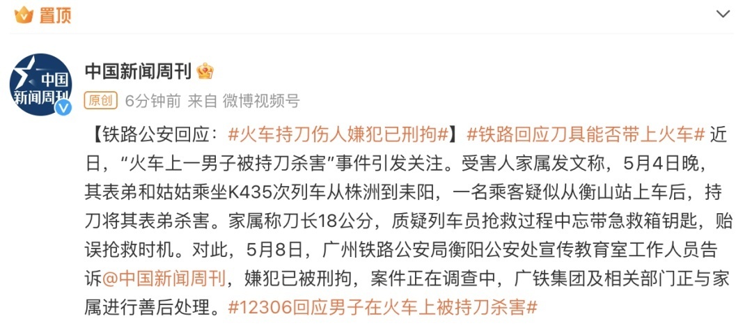 近日,有网友发布视频称,5月4日晚K435次列车上一男子被人持刀杀害。