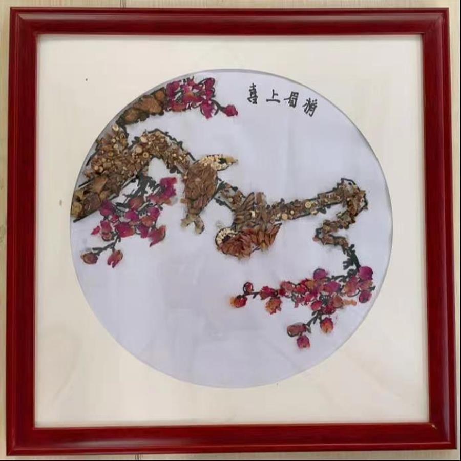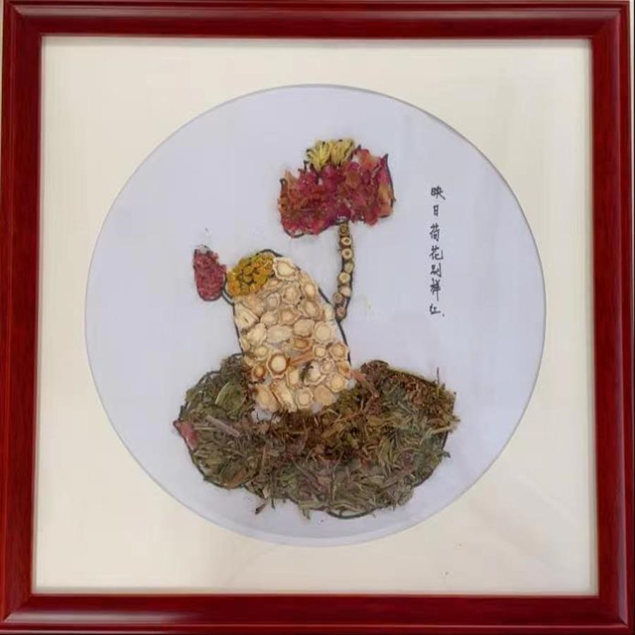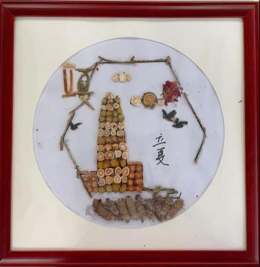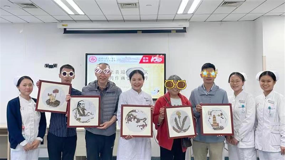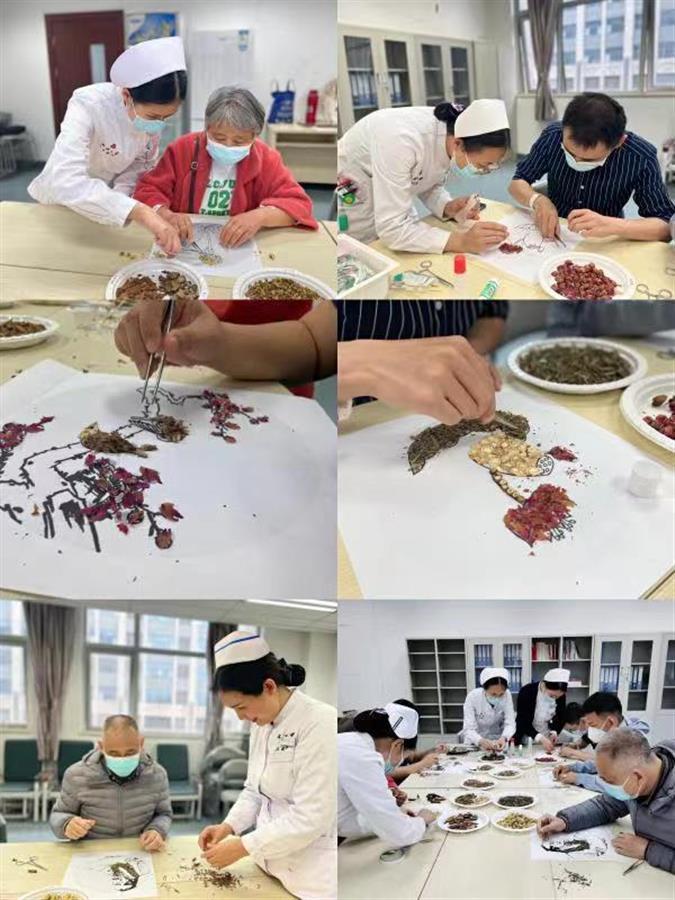 在中医科护士长唐燕青的组织下,医护人员与患者一起匠心巧手,用中草药作画,将中医药文化与创意想象相结合,将中医药文化知识创新加工,用中药材当“画笔”和“颜料”,采用粘、贴、拼、嵌等技艺,将中医药文化知识以有形的艺术品表现,实现了“古典与创新、药与美”的完美结合。