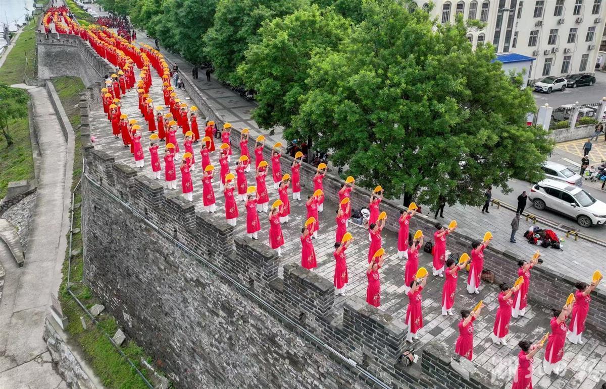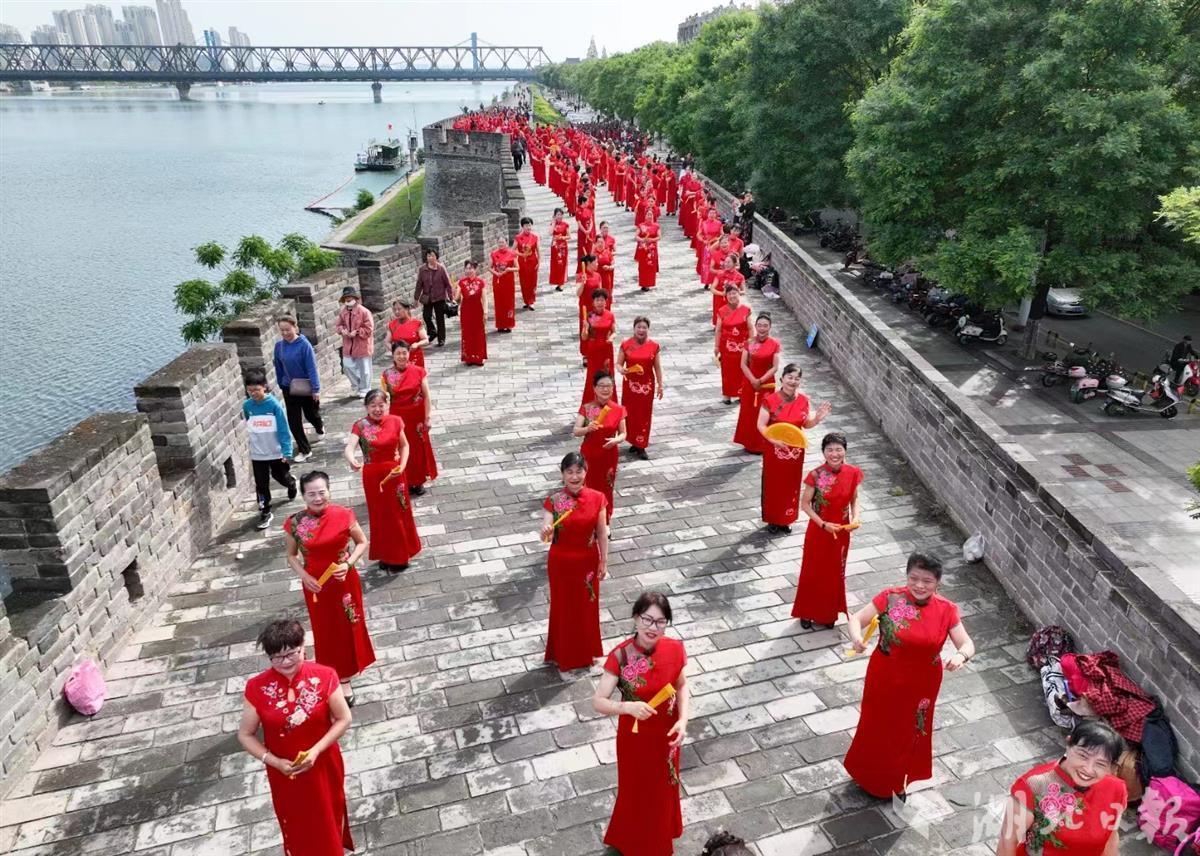 湖北日报讯(记者胡梦思、通讯员何雯、叶珊兰、叶强)5月7日,襄阳古城墙,1361名身着红色旗袍的女性登上城墙走秀。
