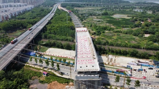 京港澳改扩建武汉绕城高速中洲至北湖段跨武九铁路转体桥工程由湖北交投集团投资建设、中铁十一局承担施工。项目已于2022年4月正式开工。大桥紧邻既有武汉绕城高速跨铁立交桥,道路中线与铁路斜交,使用水平转体法施工,采用2×65米T构箱梁+30m简支箱梁转体结构,转体重量约14000余吨。