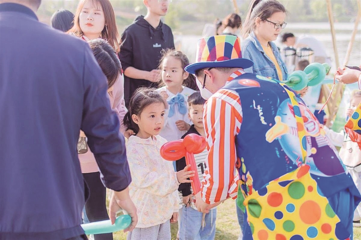 随着流域综合治理和生态修复工程的深入实施,原来这里遍布坑塘的景象不复存在,取而代之的是水草丰茂、碧波荡漾。大批游客趁五一假期在此露营、欣赏湿地美景、听湖畔音乐会、逛网红市集、看露天电影。