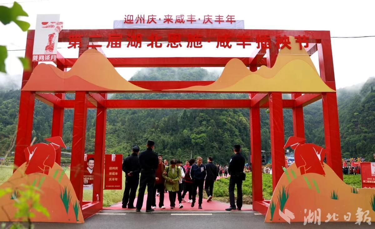 湖北日报客户端讯(通讯员文朝顺 杜迪纳 李维君 谭昌龄)陇间慢硒行,乐享春耕趣。5月10日上午10时,咸丰县“迎州庆·来咸丰·庆丰年”第二届湖北恩施·咸丰插秧节在忠堡镇马倌屯村彩色稻田基地举行。活动旨在传承农耕文化,共同分享农文旅融合成果,打造农文旅专属IP,推广富硒产品,共谋富硒产业发展,加快推进乡村振兴步伐。