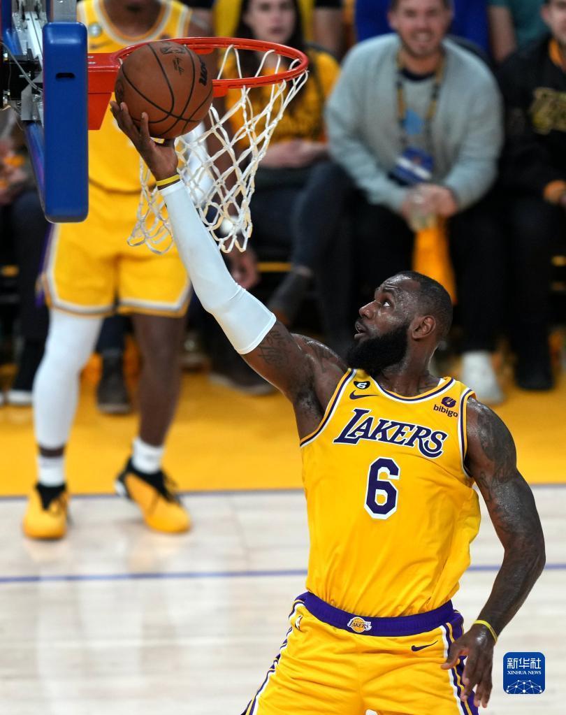 5月10日,湖人队球员詹姆斯在比赛中上篮。新华社记者 吴晓凌 摄