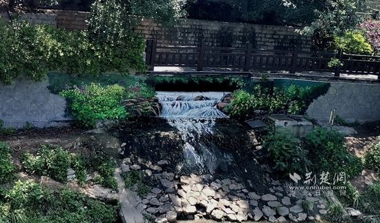 淦河对岸的在老二号桥头的建筑一楼到八楼的墙面已搭上了施工架,正准备对整个彩绘美化;出水口也进行了整理,绘上了瀑布,无论有水无水,皆是一道风景,带给市民和游客更丰富的游历体验。