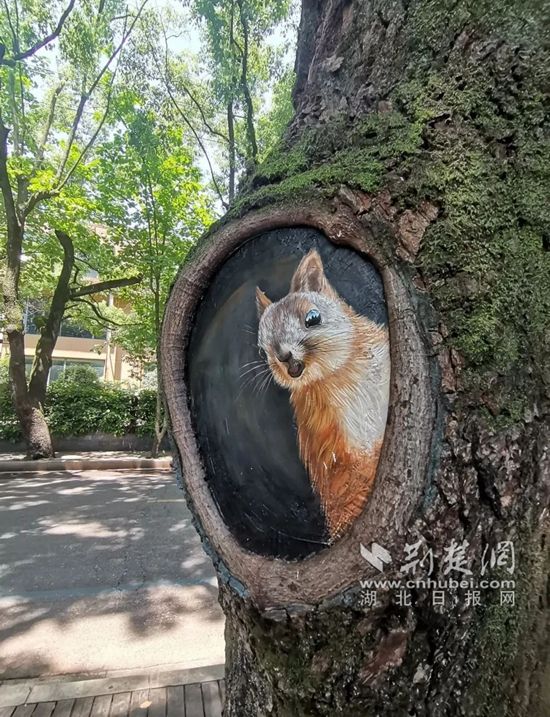 从温泉谷到党校入口处的山体杂草和垃圾已清理干净,种上了耐阴的绣球花、彩叶草、网纹草等花草,展现出别样风情;街对面的道行树上放上了仿真松鼠、猫头鹰和桂花,树洞横截面“长满”了松鼠、龙猫,淦河边步道旁砖砌的窨井盖因势利导,做成了树桩的模样,配上微塑蘑菇,几可以假乱真;电箱穿上了风景类的彩绘新衣……栩栩如生的小动物和与周围环境浑然一体的彩绘,让新升级的月亮湾网红路“萌化”了!