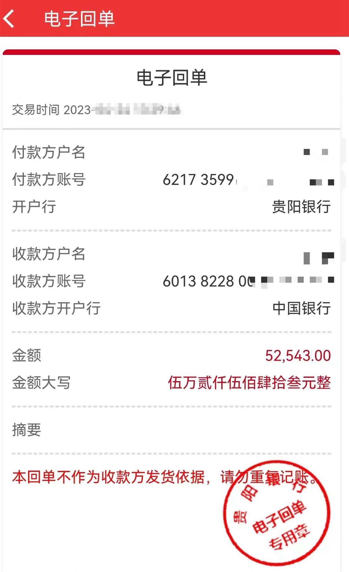女顾客向店方的转账记录 (受访者供图)