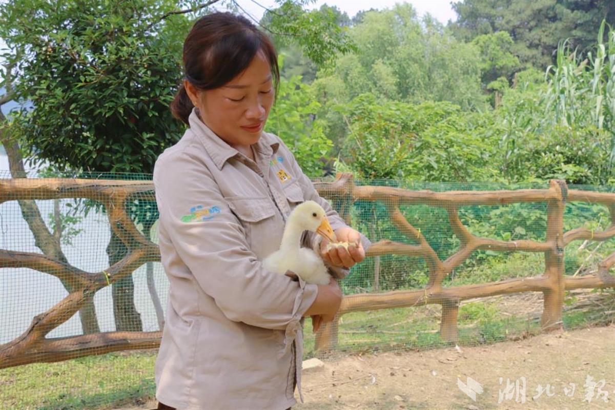 在武汉野生动物王国的“萌宠幼儿园”里,有51只体型、毛色各不相同的水禽宝宝。这是一群由鸿雁、白鹅、黑天鹅宝宝的混编鸭科家庭,但它们有一个共同的雁妈妈——饲养员陈小英。