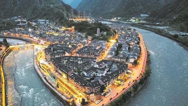重建的映秀镇夜景 摄影:楚天都市报极目新闻记者周浩 谢茂