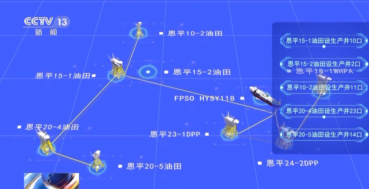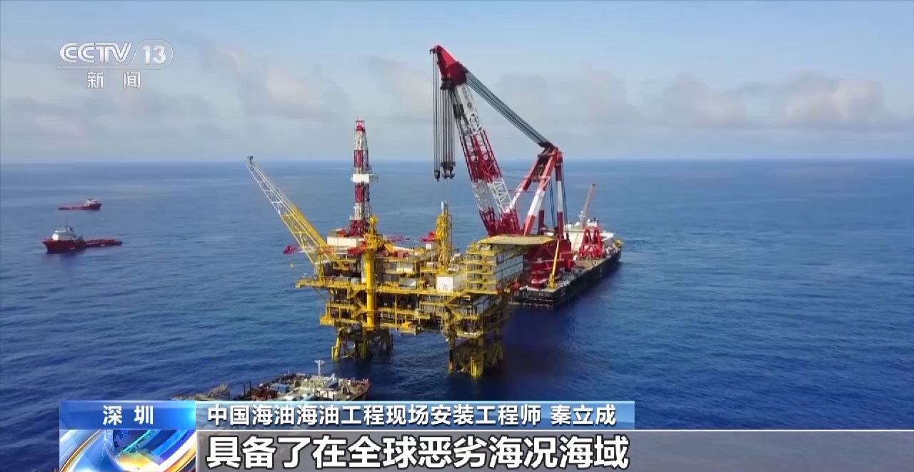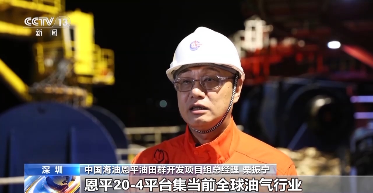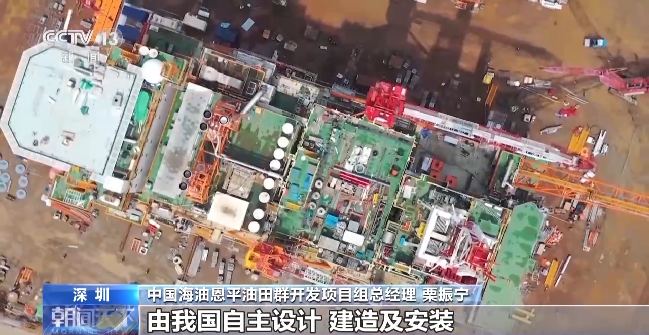 中国海油恩平油田群开发项目组总经理 栗振宁:恩平20-4海上钻采平台由我国自主设计、建造及安装,可实现钻修井、智能采油、油气水综合处理以及伴生气回收利用等多项功能,搭载了复合脐带缆、中控系统等大量国产化装备。