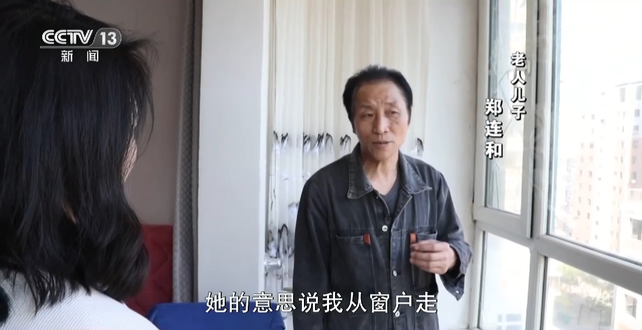 老人儿子 郑连和:她是想啥呢,门让我反锁了,她走不出去,她的意思说我从窗户走,她就是不想在这待着了,出去溜达,她把拐杖先扔到楼下,还有一个包,装了一身衣裳。