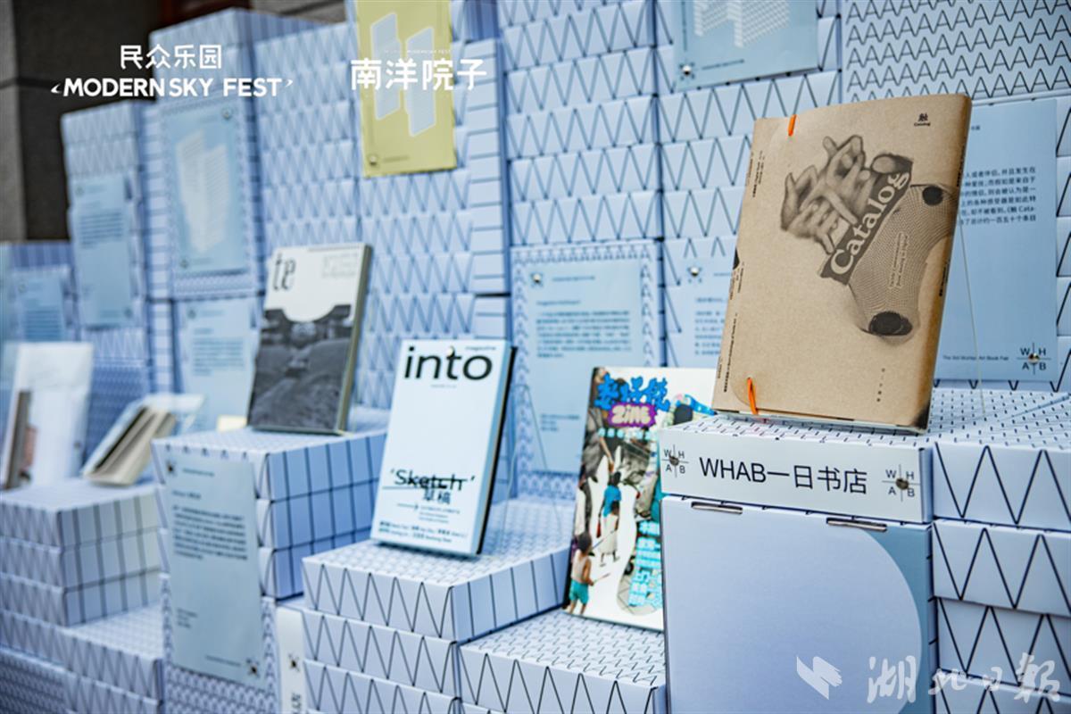 走进南洋大楼院内,一眼便能看见一处艺术感满满的白色书墙。作为WHAB2023艺术书展“一日书店巡游计划”的终点站,南洋院子持续探索艺术书籍与城市空间的关联性,在院内空间里开辟一处展台,为每本选书单独打造出一间小型白盒,构建起一面书墙,创造属于艺术书的小空间。读者们在现场翻阅、观看,体验书香与音乐的奇妙碰撞。