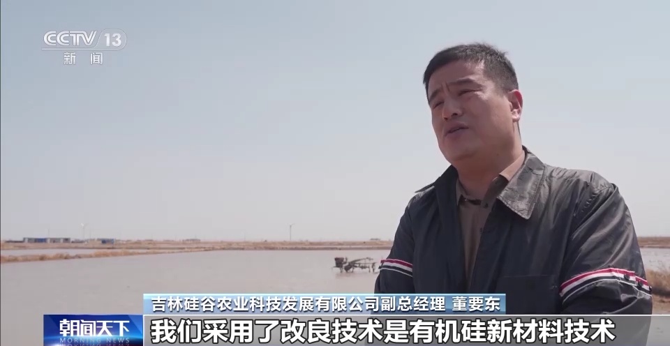 吉林硅谷农业科技发展有限公司副总经理 董要东 :我们采用了改良技术是有机硅新材料技术。该技术是生态治理、生物改良。我们今年预计产量要突破(每亩)400公斤以上。使白茫茫的盐碱地变成米粮川。