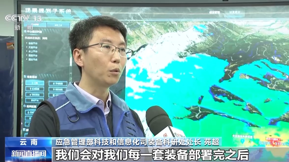 应急管理部科技和信息化司装备科研处处长 苑超:通信信号是看不见摸不到的,那么通过这套系统,我们对每一套装备部署完之后,它的覆盖范围,它的信号强弱进行一个展现,主要是通过颜色的不同来进行一个区分。信号最强的地方,我们会用红色来进行标注,我们把最终仿真推演的结果推送给一线救援队伍,救援人员就会知道去某一个地形下选择带什么样的装备,带装备的数量以及它部署的位置。