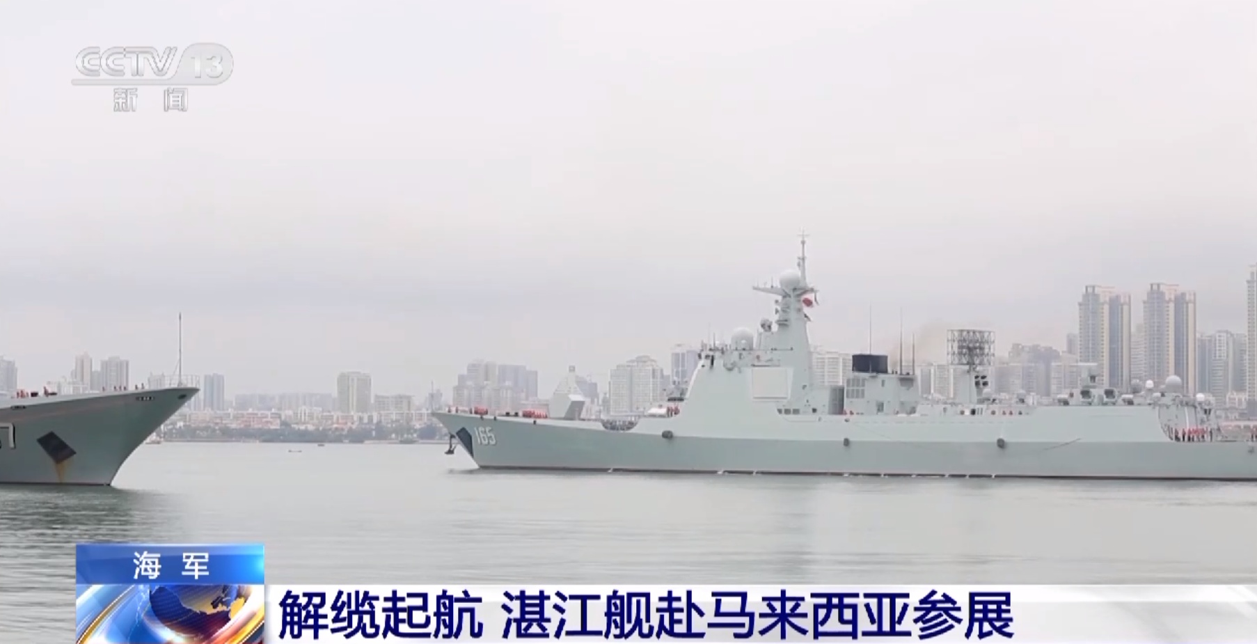 昨天(16日)上午,海军湛江舰从湛江某军港解缆起航,赴马来西亚参加第十六届兰卡威国际海事和航空展。