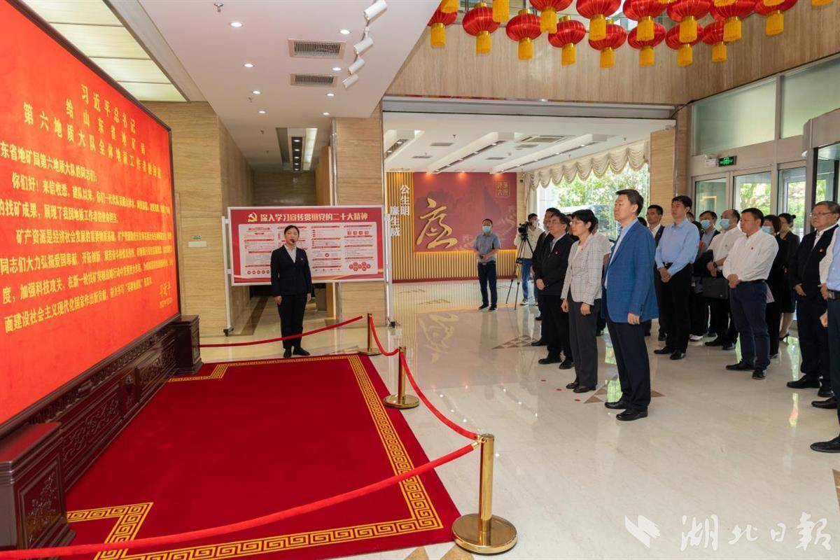 联学联建活动当日,在山东省地矿局第六地质大队办公楼习近平总书记回信屏风前,参加活动人员重温了习近平总书记重要回信精神,进一步感悟重要回信重大意义和深刻内涵,切身体会习近平总书记对做好矿产勘查工作的殷切期望和对全体地质工作者的深情厚爱。