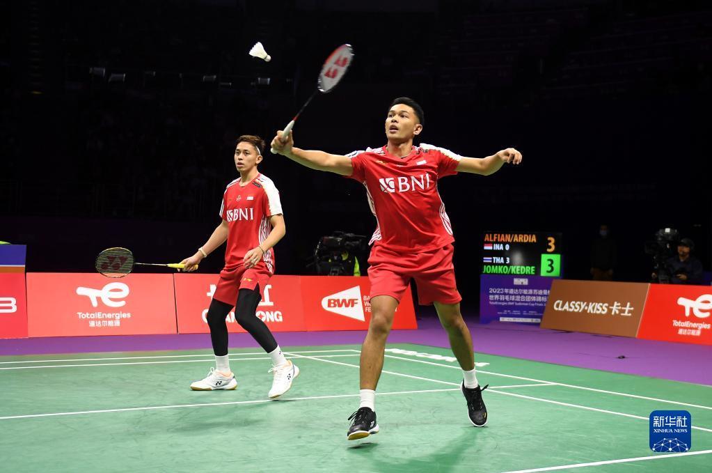 当日,在江苏苏州举行的2023年苏迪曼杯世界羽毛球混合团体锦标赛B组第三轮比赛中,泰国队以3比2战胜印度尼西亚队。最终,泰国队、印度尼西亚队分别以小组第一、第二的成绩晋级八强。
