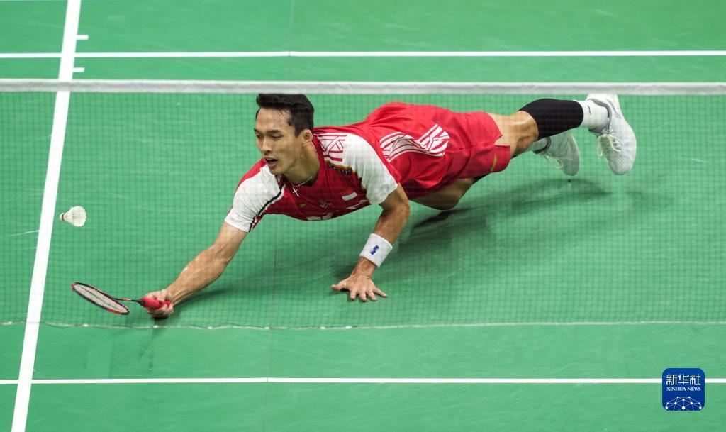 5月18日,印度尼西亚队选手乔纳坦在男单比赛中,他以1比2不敌泰国队选手昆拉武特。新华社记者 杨磊 摄
