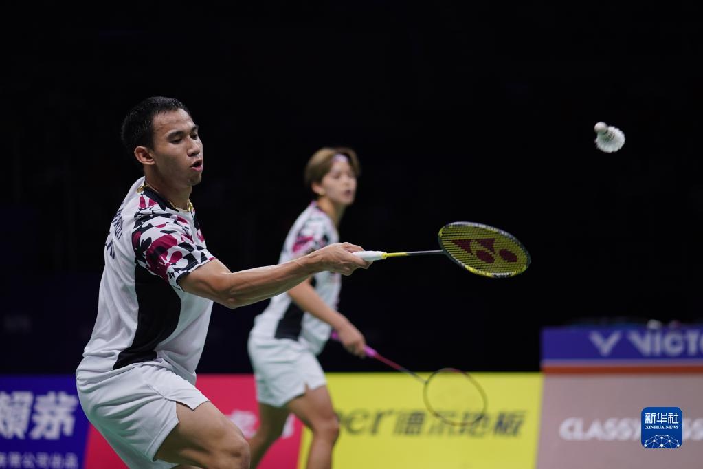 5月18日,泰国组合德差波(右)/沙西丽在混双比赛中,他们以2比0战胜印度尼西亚组合德扬/维德佳佳。新华社记者 杨磊 摄