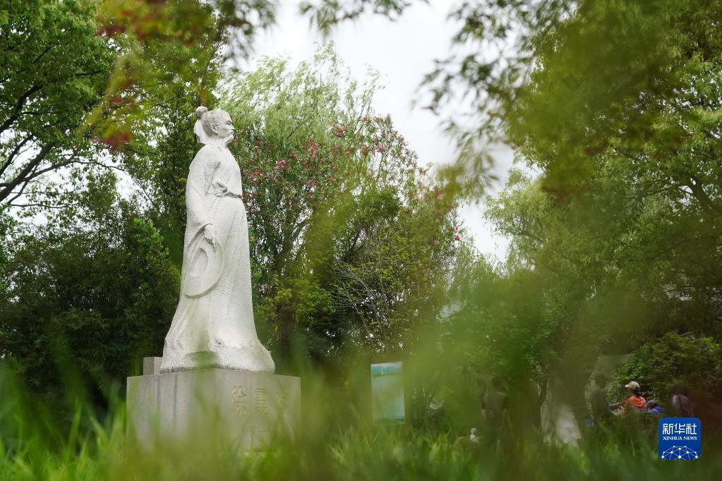 仰圣园内的徐霞客塑像(5月17日摄)。